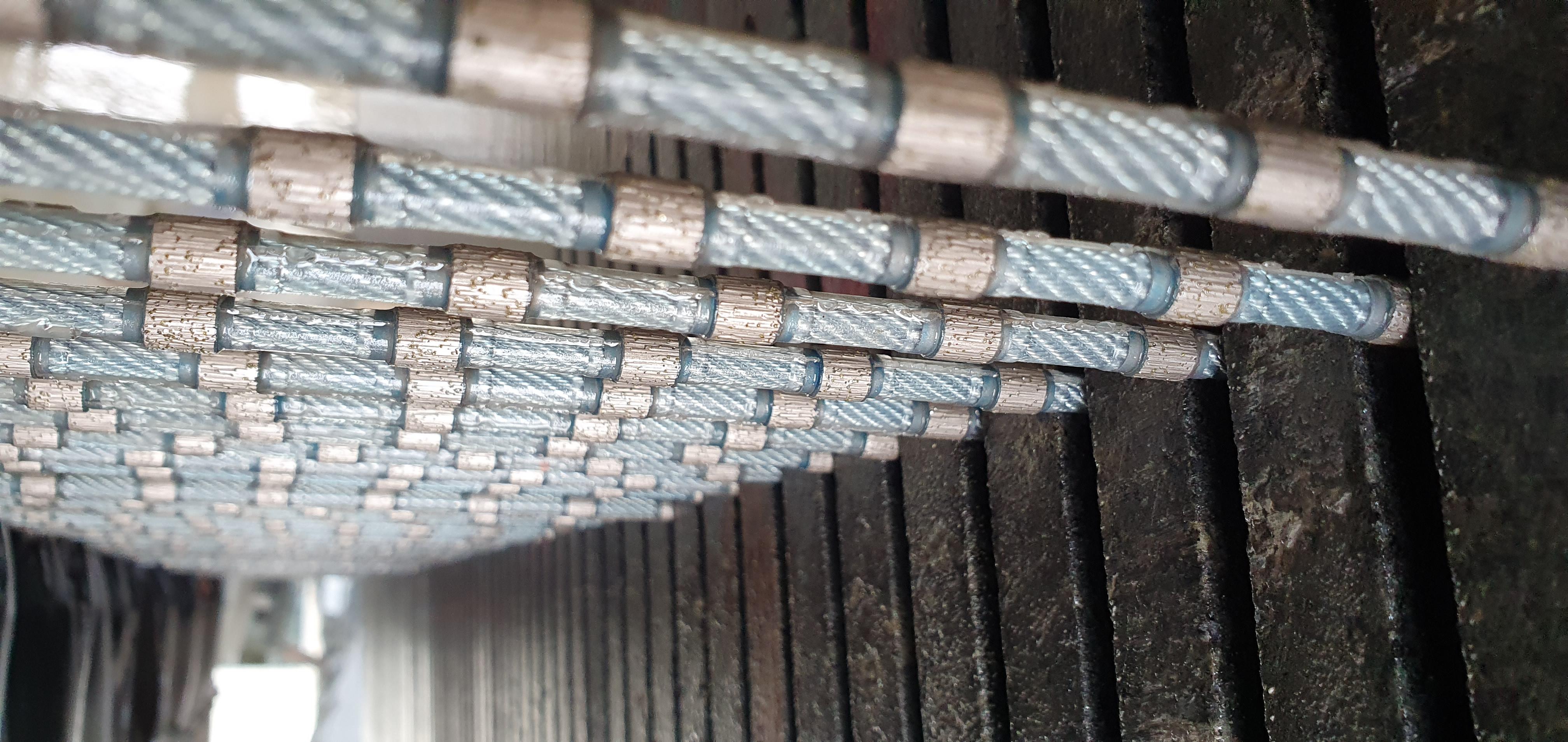 | 直徑 (mm) | 串珠數/m | 固定方式 | 石材硬度 | 線速度(m/s) | 切割速度 (m2/h) | 使用壽命 (m2/m) |