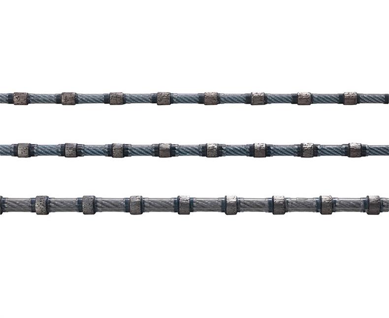金剛石串珠繩廣泛的用于石材荒料加工,如整形、異形和切板等。可根據石材選擇不同的固定方式和串珠數量。